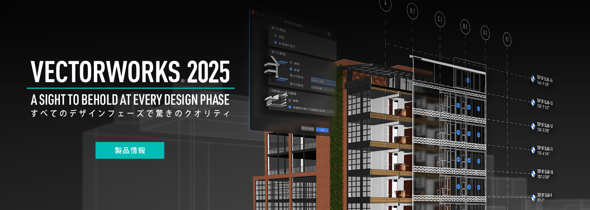 Vectorworksをより深く活用するための情報サイトです。各製品の機能やよくあるご質問を詳しく解説した記事などを掲載しています。