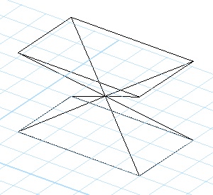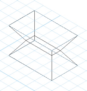 柱状体と同じように、2D図形を挟むのですが、2つの2D図形を描くことによって、上面と下面のことなる多段柱状体になります。