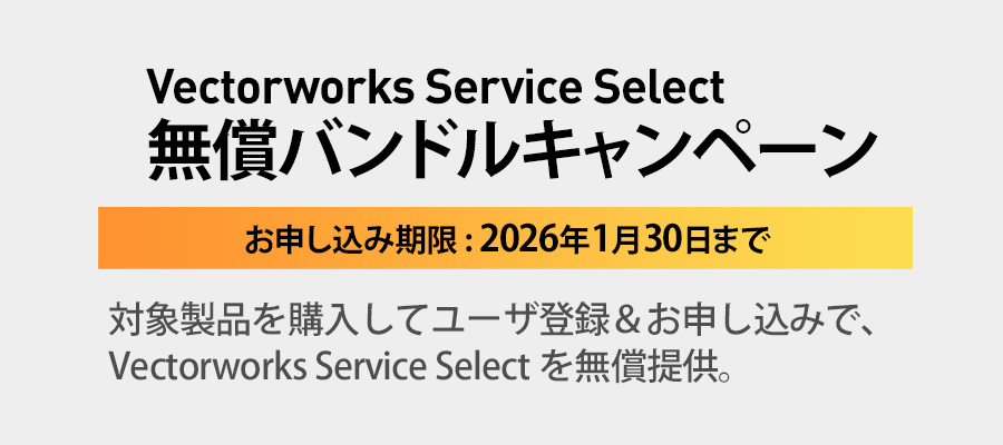 10月17日(金)から対象製品のご購入、新規ユーザIDにてユーザ登録、およびキャンペーン申込を完了いただいたライセンスに、年間保守サービスVectorworks Service Selectを無償提供するキャンペーンを実施します -