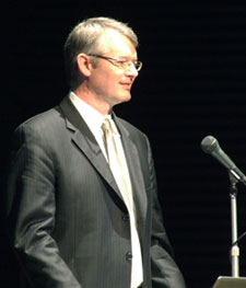 基調講演に立ったVectorworksの開発元、Nemetschek North America社のショーン・フラハティCEOは、「Vectorworks 2009は、お客にとって大きな飛躍をもたらすものになります。ここ数年来で最も大きな決断をした理由についてご説明したいと思います。」と切り出し、2009に搭載された新たなテクノロジーについて解説をはじめました。