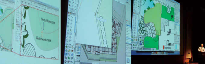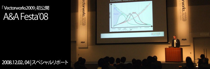 最後に「米国市場から世界中へと販売のはじまったVectorworks2009シリーズに、しっかりとした手ごたえを感じています。また、お客様の多くでParasolidの採用も非常に好意的な反響をいただいており、日本のお客様にも気に入っていただけることでしょう。」とのメッセージを最後に講演を終えました。 |