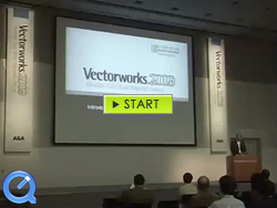 続いてはじまったVectorworks2009のデモンストレーションでは、弊社販売推進部:塩澤より、まず新たに日本市場に投入される「Vectorworks Architect シリーズ」をご紹介。同時にVectorworks2009シリーズの新しいパッケージデザインが発表されました。