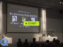 夕刻に開催されたパネルディスカッションには、自ら建築事務所、デザイン事務所を運営しながら教育の現場でも活躍し、Vectorworksの本の著者をされている河村容治氏、柴田映司氏、福田一志氏の3名がパネラーとして「想いをかたちにするための方法」を語りました。