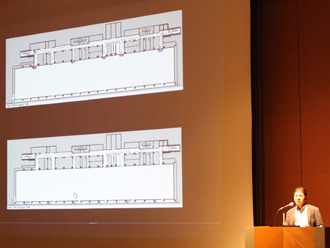 そして、私どもはたくさんの大型ドームを設計してきましたが、これらのドームではスタンドから人が居なくなる時間を8分以内、建物の外に全員出るまでが15分以内というルールを適用しています。致命的な事故を無くすために設計者ができることは、無理のない人の流れをつくることです。スタンドデザインでは、上のスタンドの縦通路とゲートに向かう下のスタンドの縦通路を千鳥配置にするのが一番効率的であることがシミュレーションでもわかってきています。また、日常の動線計画では人が集中するピークで設計をすると合理的でなくなります。このため、ピーク崩しのような合理化対策も必要です。相撲の弓取り式などは一種のピーク崩しで、日本には古来からこのような知恵があります。