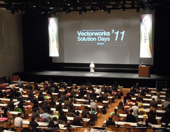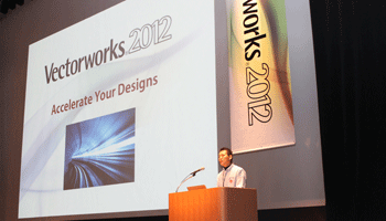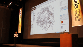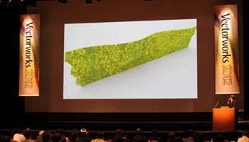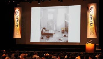 進化をつづけているVectorworksのBIM(ビルディング・インフォメーション・モデリング)について、昨年以上に関心が高まっていることに触れ、BIMユーザ向けにA&Aから発信している情報を改めて紹介しました。また、Vectorworks2012シリーズのArchitectやDesignerに搭載された、エスキスからモデリング、コラボレーションまでをサポートする新機能を紹介し、OpenBIMとして外部アプリケーションとの連携がよりスムーズになった点も強調しました。