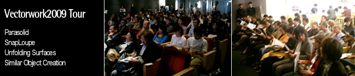 各AppleStoreTour、多くのお客様にご来場いただき、Vectorworks2009シリーズの新しい機能や可能性をご覧いただきました。VectorWorksをお使いで、普段お仕事でお困りの事をご相談いただき、その場で解決されてお帰りいただく方も多く、お客様の声を直接お聴きできる良い機会ともなりました。