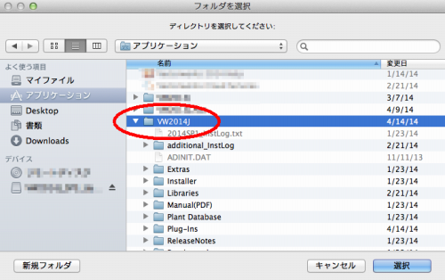 Vectorworksを含む全てのプログラムが終了している事を確認の上、解凍されたフォルダ内の「VW2014Jアップデータ」を実行してください。画面の指示に従いインストールを行います。以下の点にご注意ください。