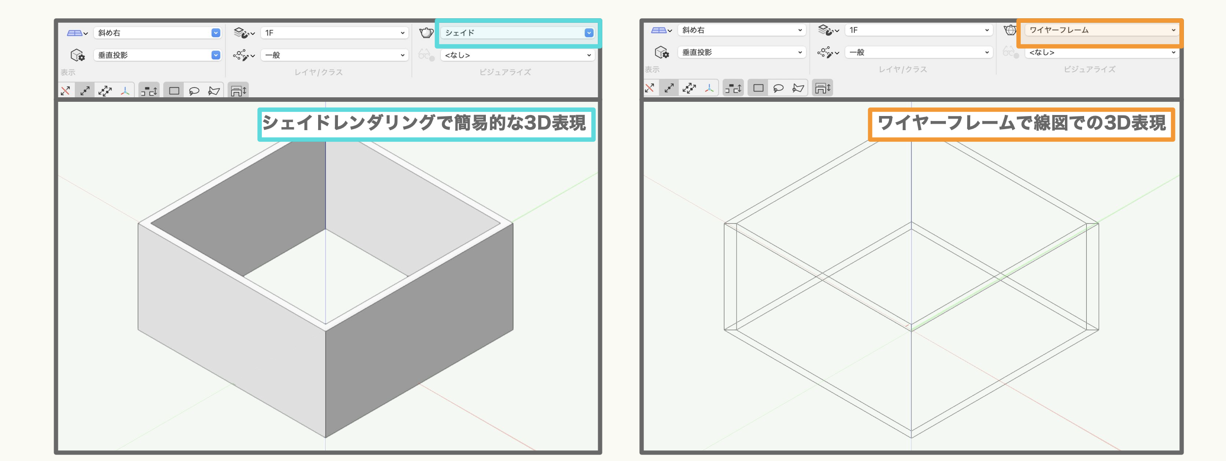 Vectorworksの2D/3Dの基礎操作については、「Vectorworks Navi スタートアップ」をご覧ください。
