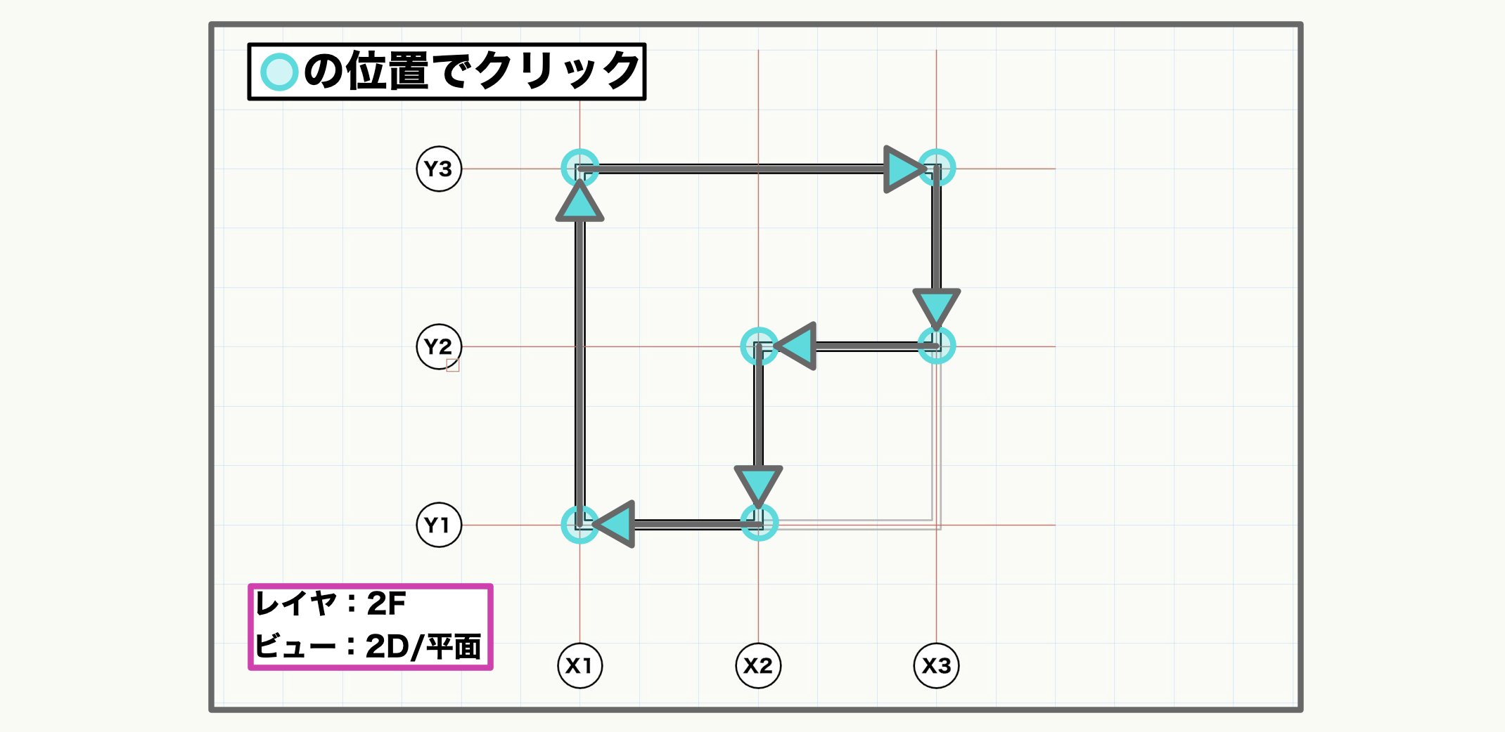 通り芯を作成する際などはグリッド線が表示されているほうが一般的には作業がしやすくなります。