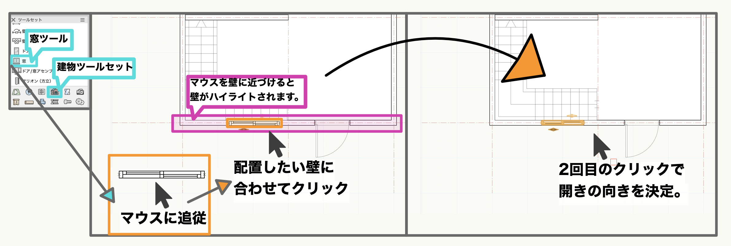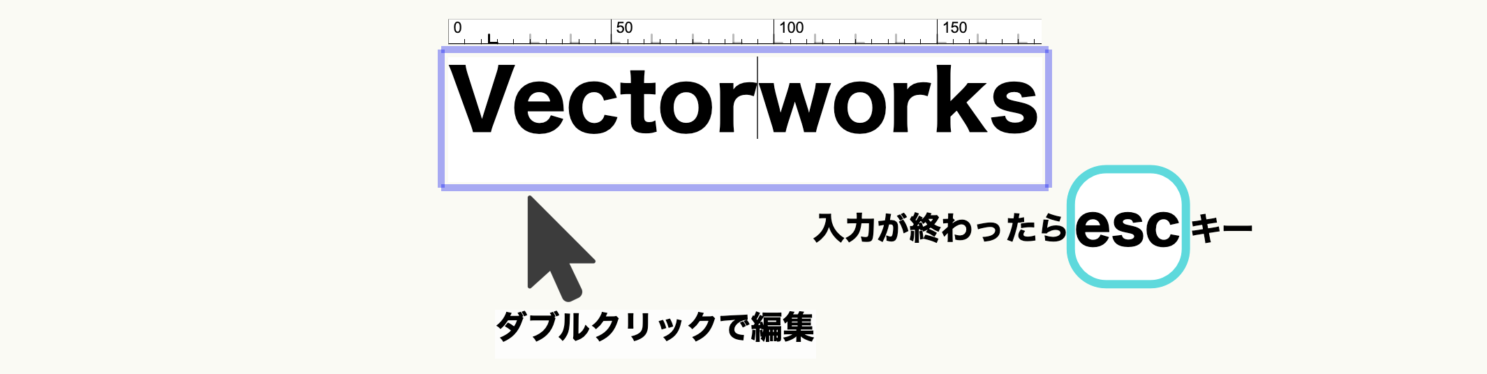 『文字』ツールで文字を配置したい箇所でクリックすると、文字入力ウインドウが表示されます。任意の文字を入力したら、「esc」キーを押して文字列を確定します。