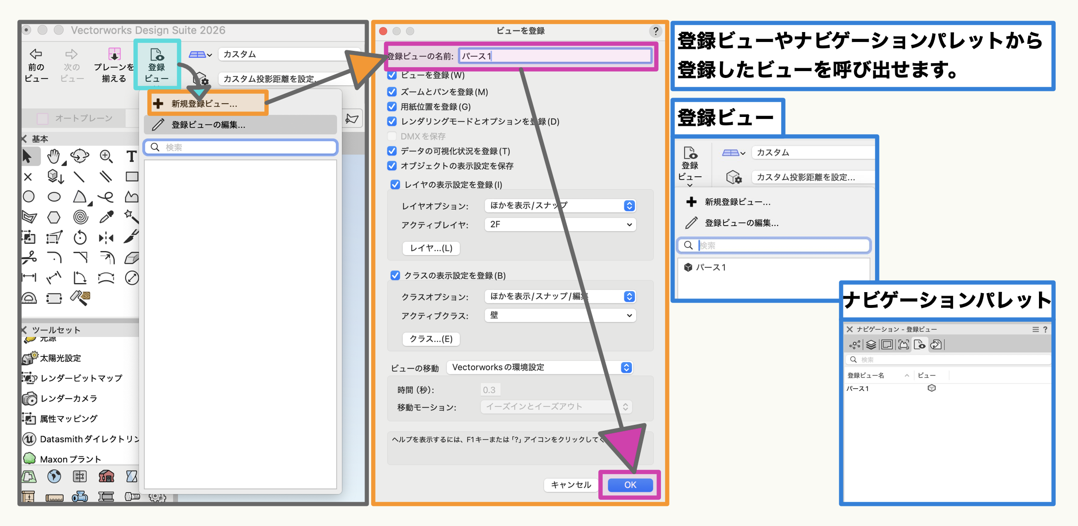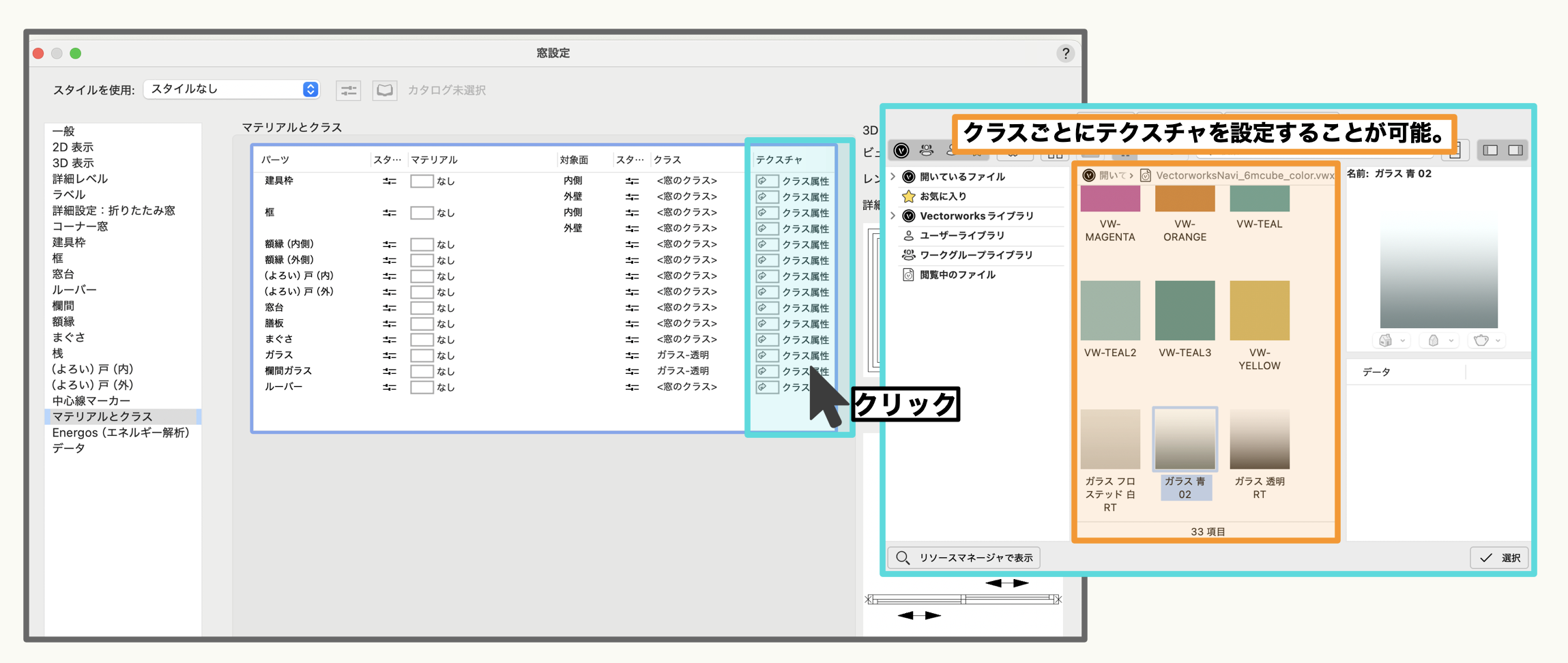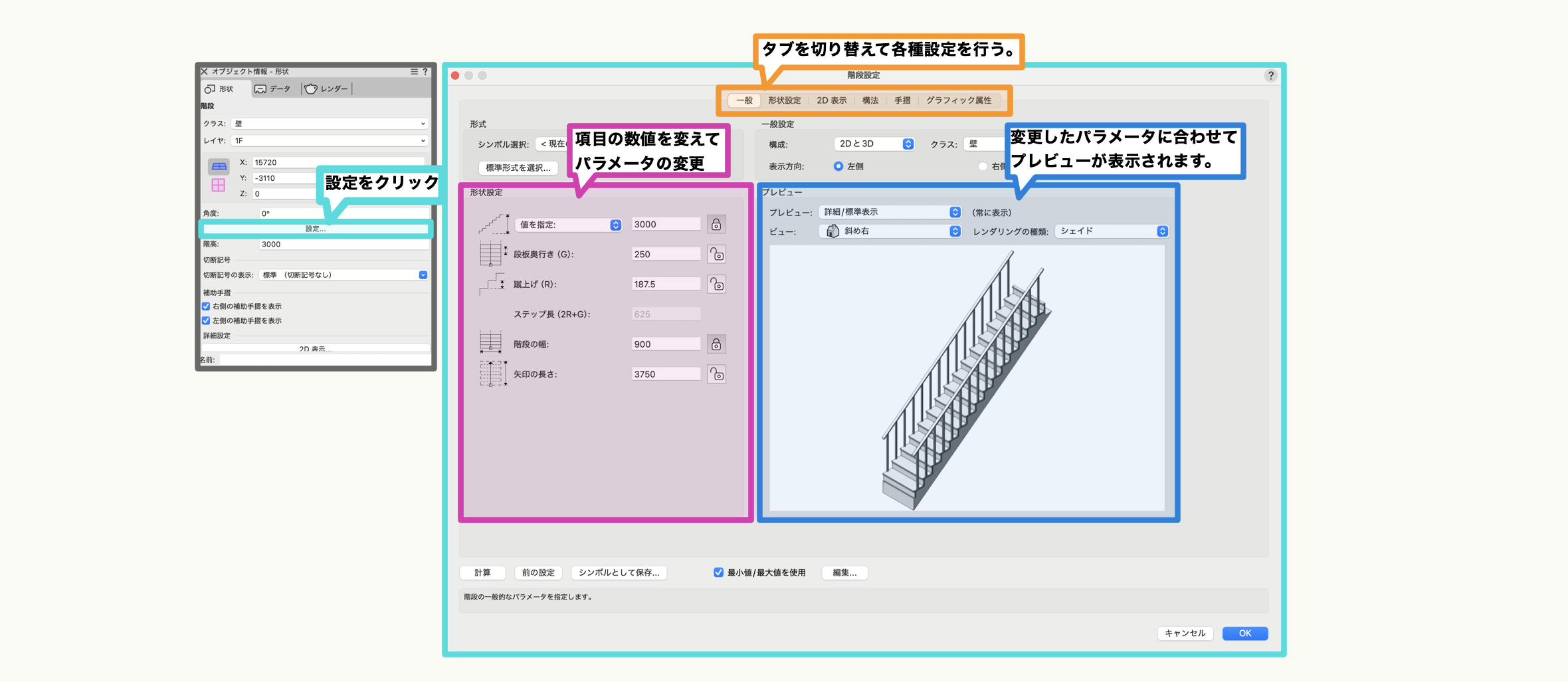 また、このページでご紹介する各機能は、各機能のすべての操作解説は行っておりません。各機能の詳細については Vectorworks ヘルプ をご覧ください。