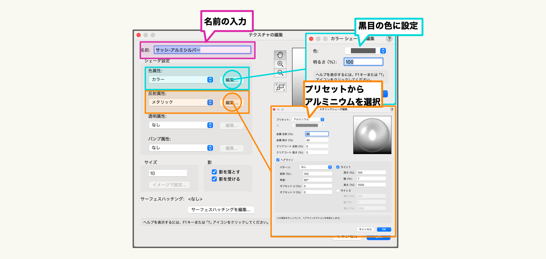 ここで記入した内容はデザインレイヤには反映されず、ビューポート図形にのみ追記されます。