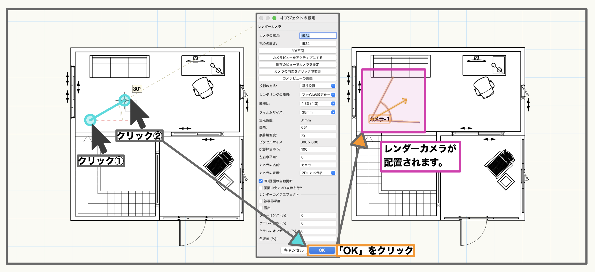 2回目のクリックを終えると、「室内展開図ビューポートを作成」ダイアログが表示されます。