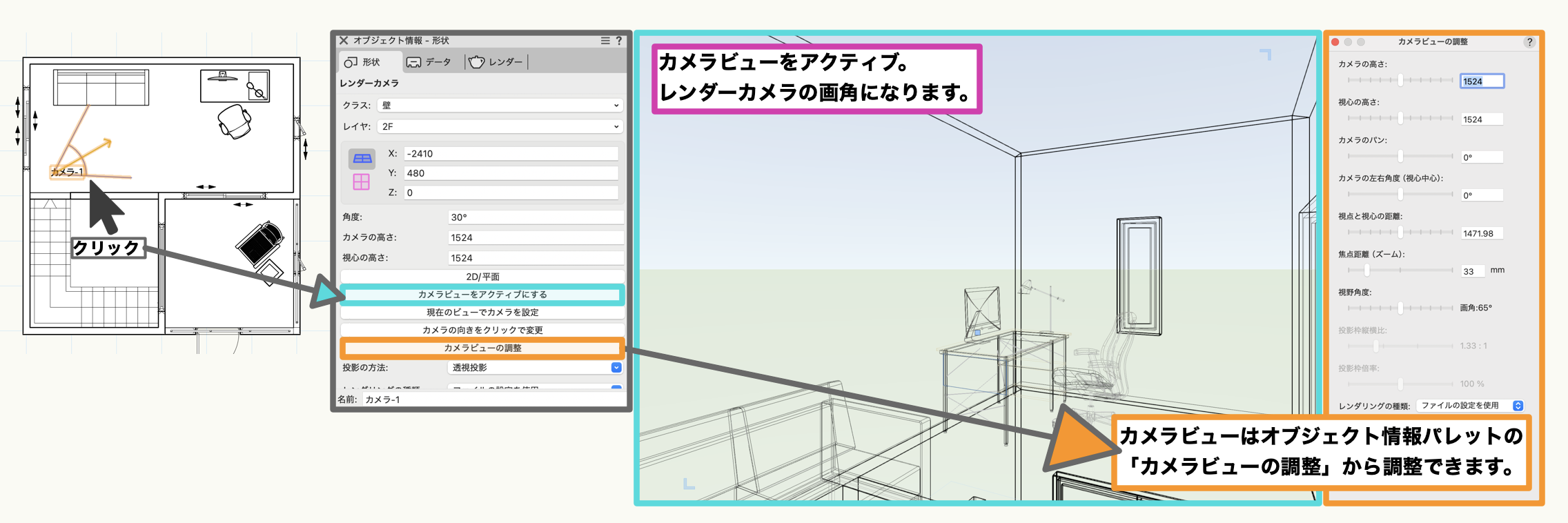 室内展開図ビューポートの詳細につきましては、 Vectorworks ヘルプ 室内展開図ビューポートを作成する をご参照ください。