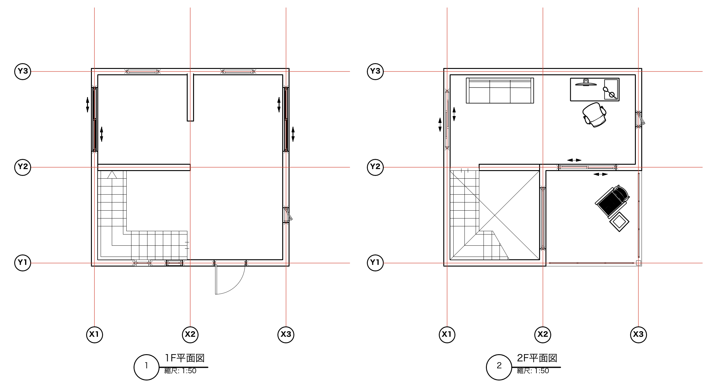- 通り芯/縮尺1:50/高さ:0/壁の高さ:0/切断面の高さ:0