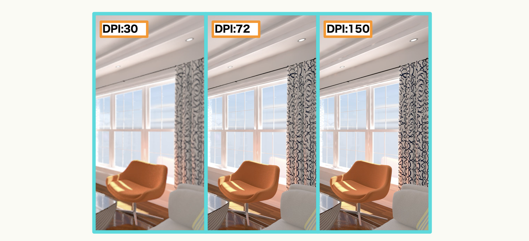 ラスタレンダリングDPIは数値を高くすればするほど解像度が高くなるため、高品位なレンダリング画像となりますが、DPIが高いほどレンダリング時間、データ容量、PCにかかる負荷なども増加します。