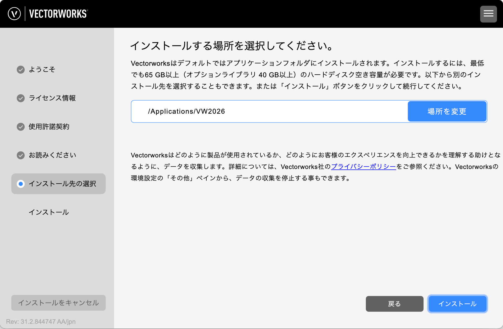 Vectorworks 2026 インストールの手順