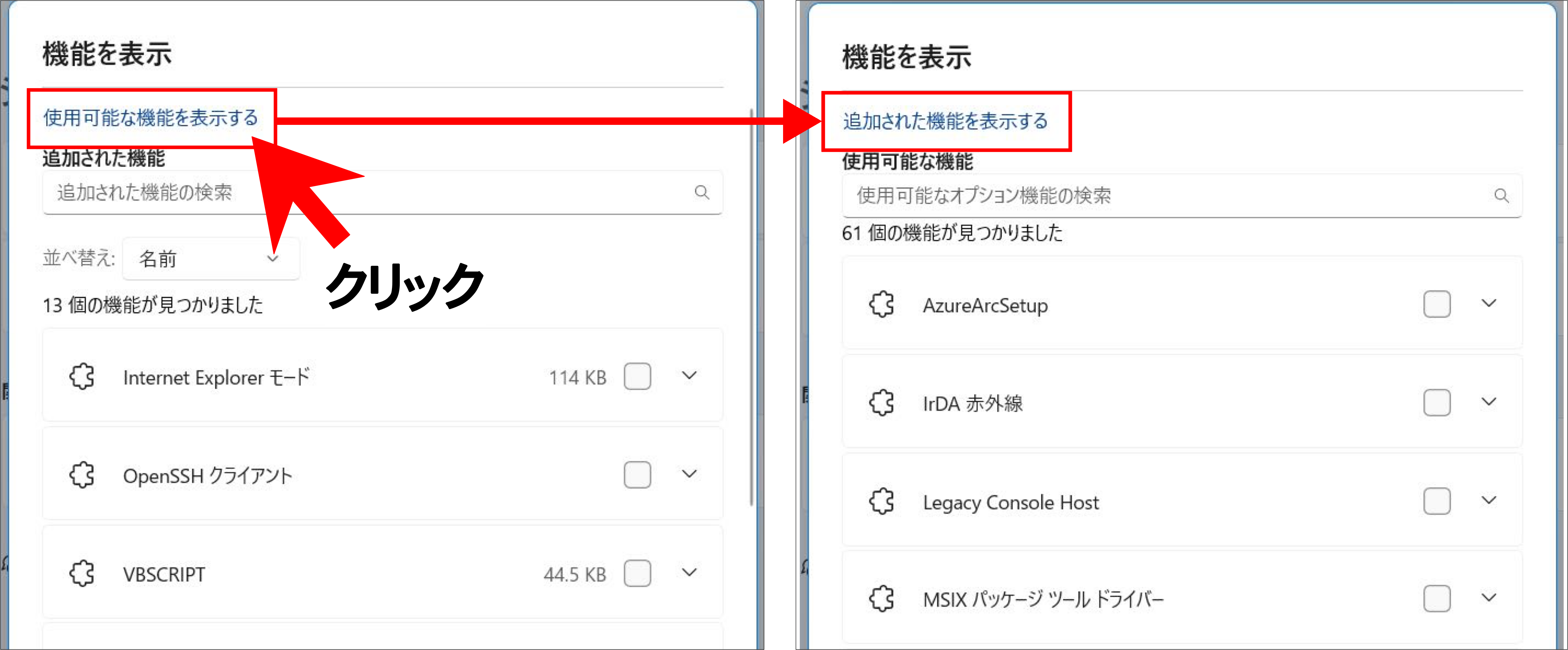 「使用可能な機能を表示する」が表示される場合は、そちらをクリックしてください。