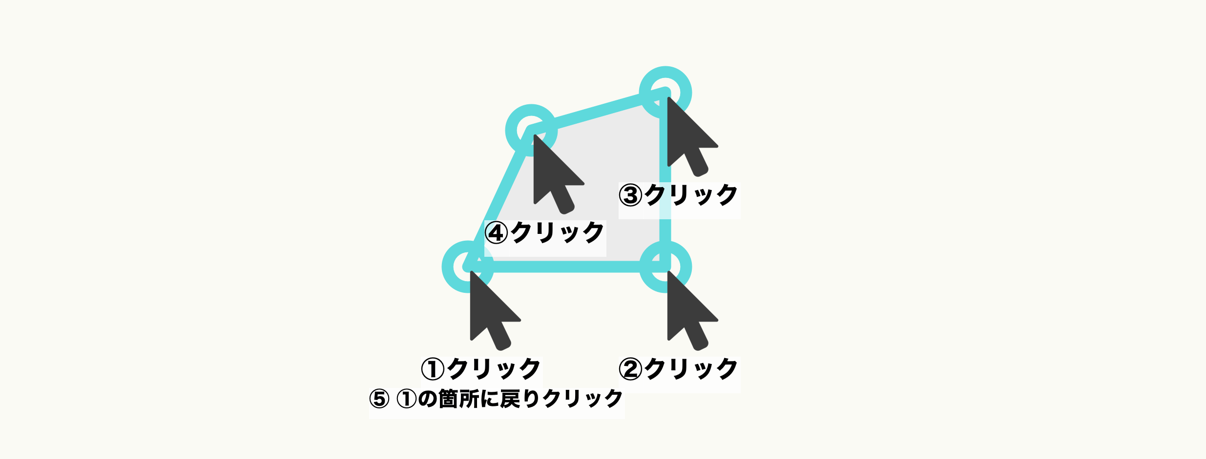 ツールを選択したら作図領域にマウスを動かし、書き始めとなる始点の位置で一回クリックします。