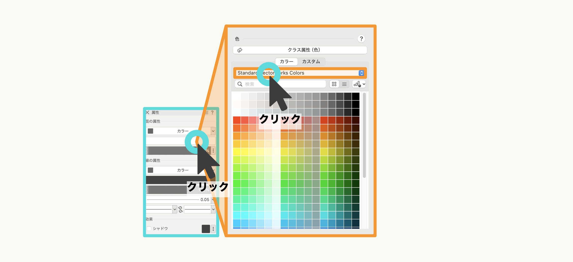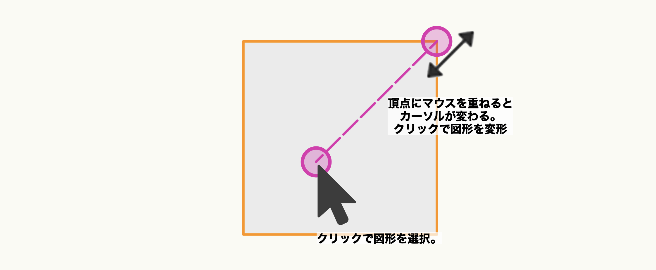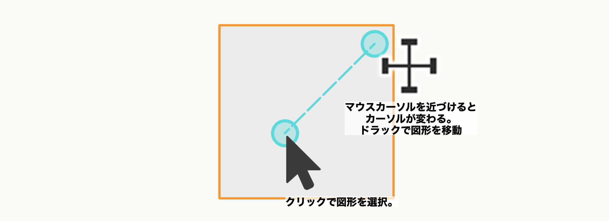 また、『セレクション』ツールを選択したら、任意の図形上でマウスクリックすることで図形を選択できます。(選択されている図形はオレンジ色にハイライトされます)