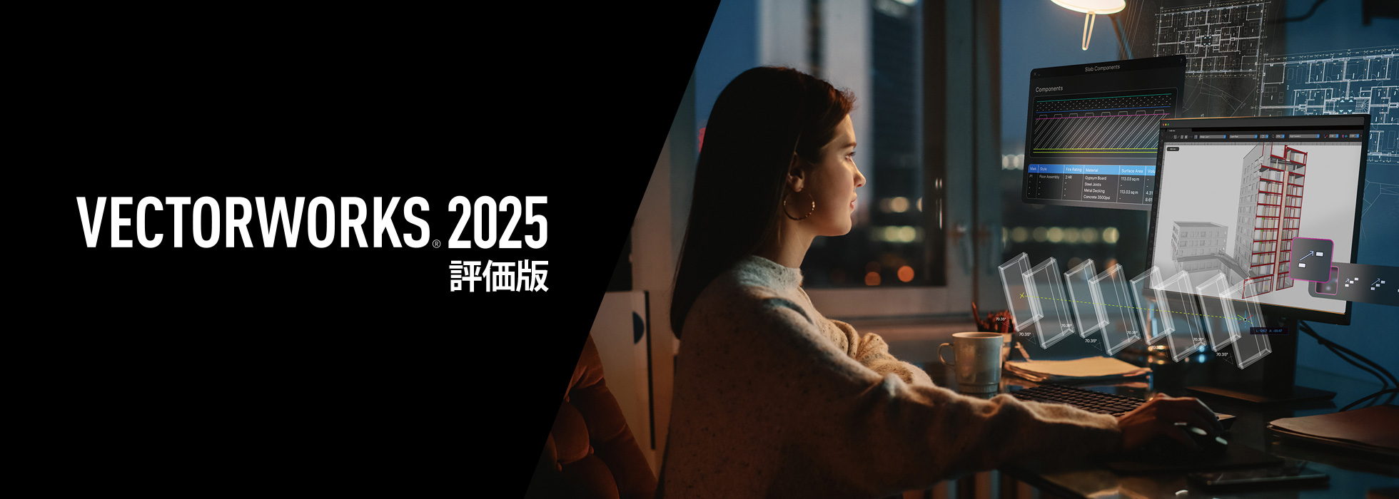 評価版はVectorworksの機能評価、操作評価のために配付するものです。目的以外のご使用はかたくお断りいたします。また、評価版に関する操作および技術的なご質問、サポートはありません。あらかじめご了承ください。