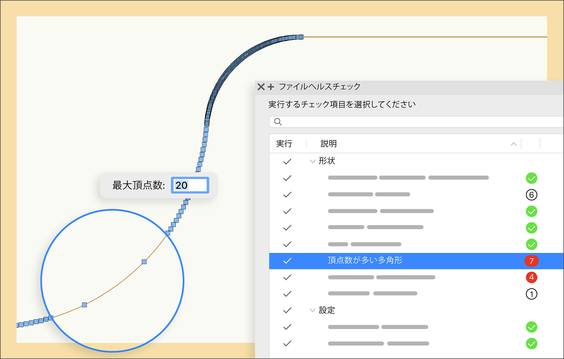 ファイルヘルスチェックパレットによって、Vectorworksファイルを手軽にベストコンディションで維持できます。形状・設定・リソースに関する隠れた問題を自動でスキャンし、ガイドに従って段階的に対処するか即座に解決します。ファイル管理の手間を軽減し、アイデアを形にする作業により多くの時間を割けます。