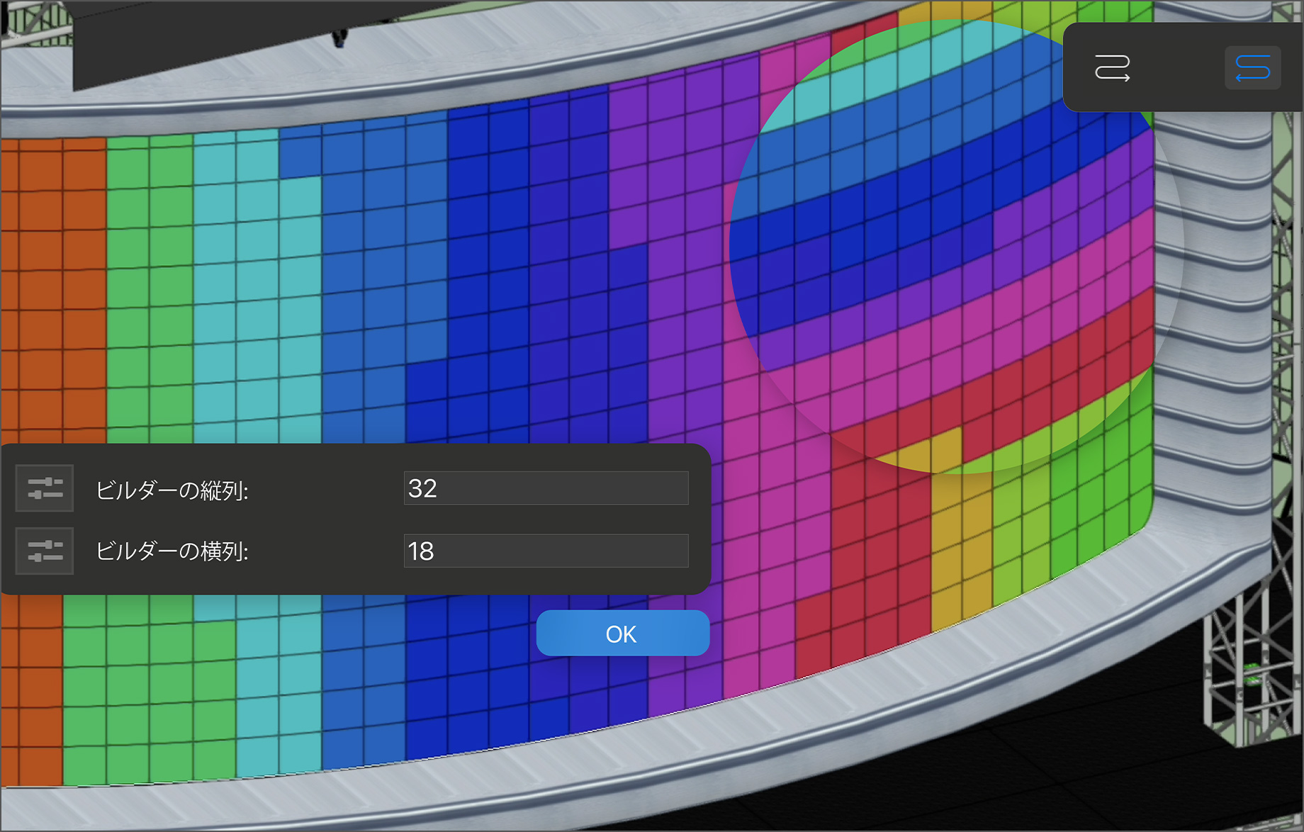 直線的な基本形状から複雑な曲線形状まで、イベントや常設設置などニーズに合わせたLEDウォールを設計しプランニングできます。電源や構造部材などの計画とも統合させた、壁面サイズや必要な部品点数、映像のピクセル解像度などの詳細なレポートを生成します。これにより、クルーや関連業者との連携をスムーズにし作業時間を短縮し、ミスを防げます。