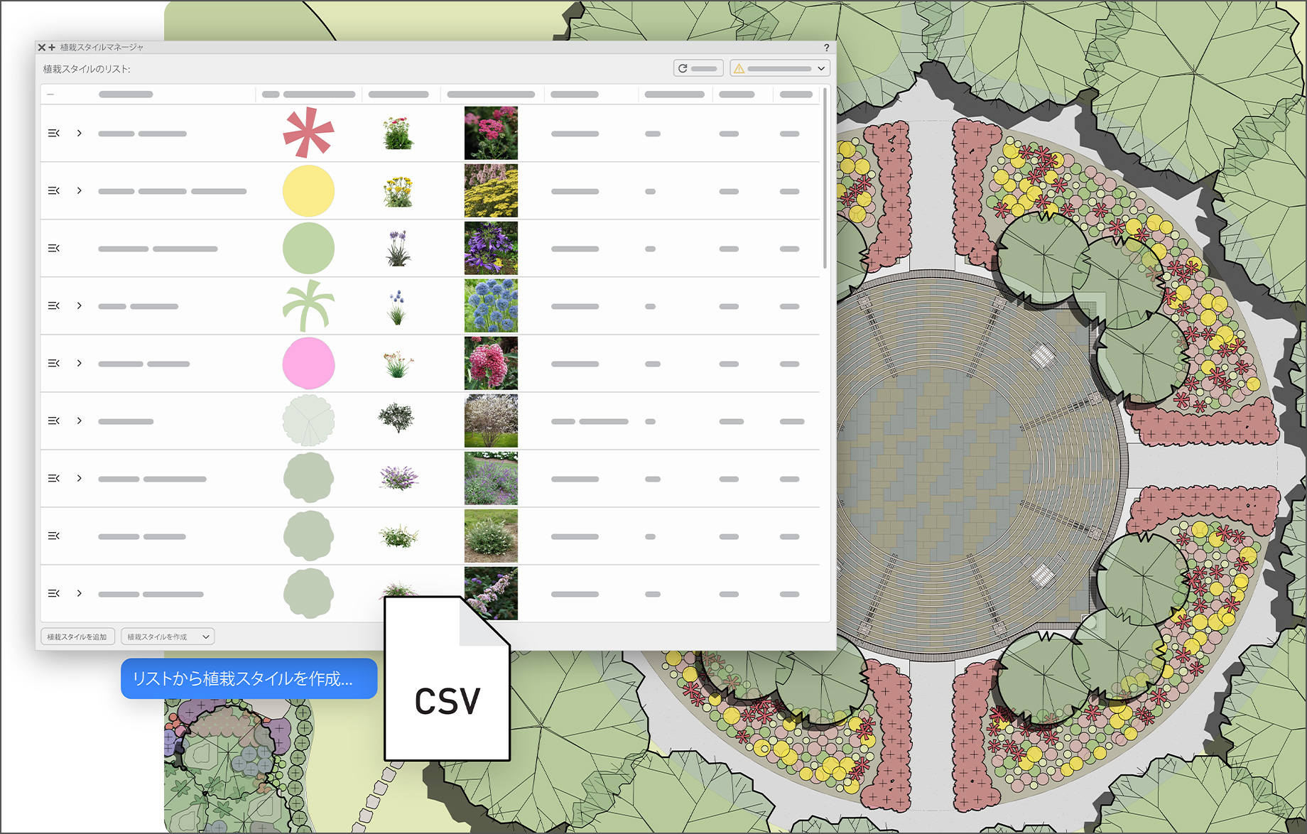 刷新されたインターフェイスと高度なフィルタ機能で植栽スタイルを容易に管理、更新できます。またより柔軟な配置モードとパスの編集機能を搭載し、クリエイティブな時間を確保しつつスムーズで直感的な植栽デザインを可能にします。