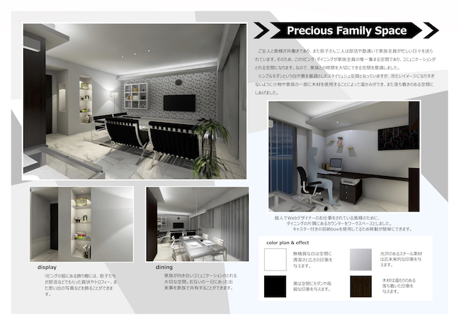 SpaceDesigner検定試験は、与えられた詳細な図面から正確な空間モデリングを行い、説得力のあるプレゼンボードにまとめることが求められます。もちろん個人でも受験できますが、試験期間内であればどこででも受験できるので、教育機関や企業による団体受験もお勧めです。使用するソフトの制限はありませんが、モデリングからレンダリング、プレゼンボード制作まで一貫した作業が一つのソフト内でき、モデリングの自由度が高く、オブジェクトも豊富に揃っているVectorworksは、この検定試験に適したソフトと言えます。