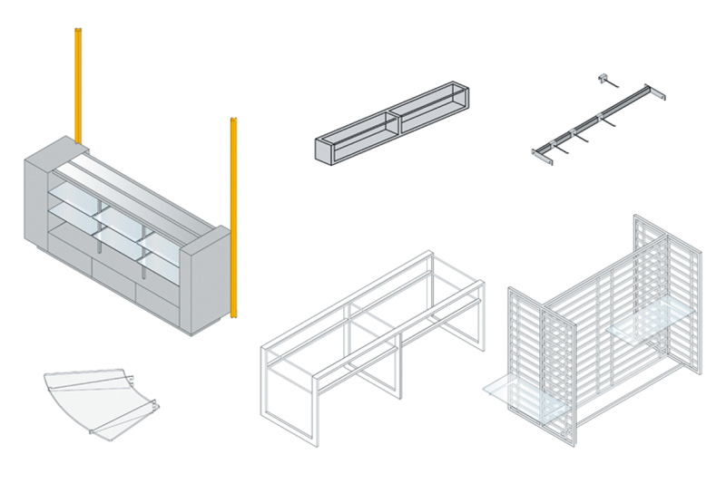 渡部:Vectorworksで描いたアイソメ図(立体を斜めから見た図を表示する方法)は一目でわかりやすく、お客様に見せる際に重要です。図面で細かく指定するより、すぐに理解してもらえるので、Vectorworksでつくった画面がそのままプレゼンシートに相当するくらい。また、今回の店舗のように店内の大きなパーツだけでなく、什器の中に入る小さなパーツまで横断して使えるということもすごく便利ですね。