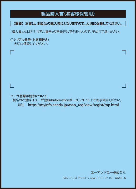 製品ユーザ登録、シリアル番号の入手に関するお問い合わせ: