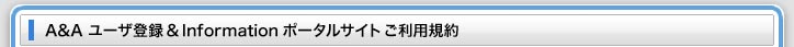 本規約は、エーアンドエー株式会社 (以下、当社という)が提供するサービス「ユーザ登録&Informationポータルサイトサービス」(以下、本サービスという)を、第2条で規定する登録ユーザが利用することについての一切に適用されます。尚、登録する当社製品の使用許諾、サービス・サポートと本サービス内容が異なる場合は、製品同梱の案内に従います。