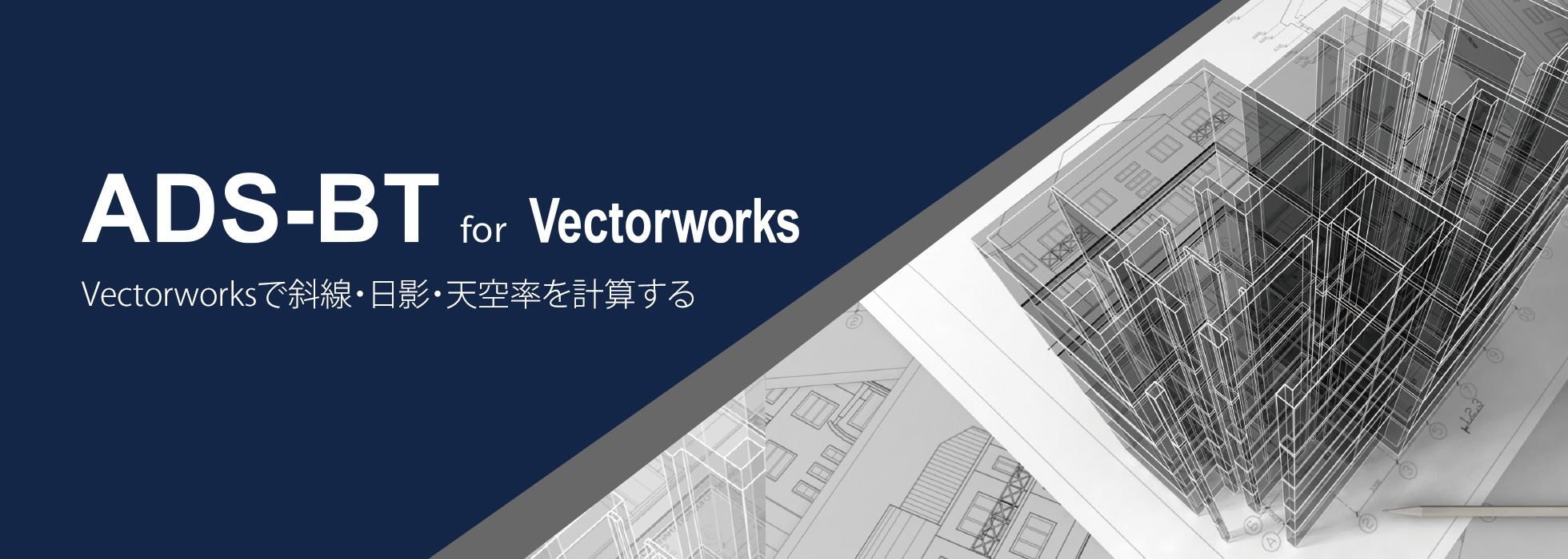生活産業研究所株式会社が開発を手掛ける「ADS-BT for Vectorworks」は、Vectorworksにインストールすることで建築設計における斜線・日影・天空率計算を行うVectorworksのプラグインです。