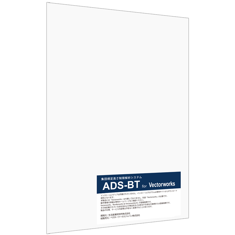 ADS-BT for Vectorworksについては、Vectorworks Japanではサポートを行っておりません。サポート情報、よくあるご質問等の最新情報は生活産業研究所株式会社のWebサイトをご確認ください。