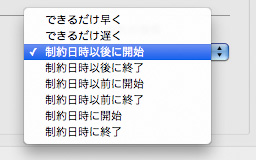 スケジュールが変更になった時に、バーの動きを制限するため、各アクティビティ(バー)に対して、8種類の制約条件を設定できます。