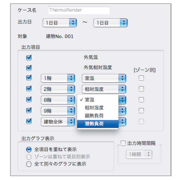建物内部の熱負荷を低減することは、室内の熱的な快適性に加え、空調システムが使うエネルギー消費量に直接影響してきます。建物熱負荷計算機能によって、断熱材の位置や使う素材の厚み、開口部の大きさ等、あらゆる影響がシミュレーションにより検討できます。