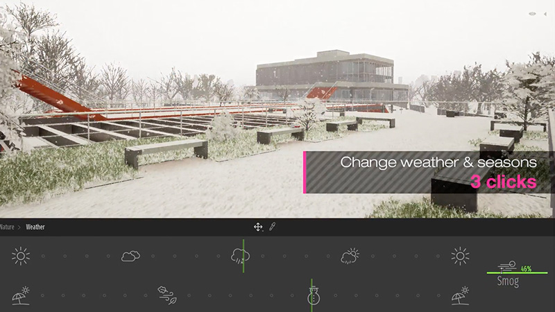 直感的でシンプルなスライダーや600を超えるアイコンによるインターフェースにより、Twinmotionは非常に簡単に習得しお使いいただけるソリューションです。