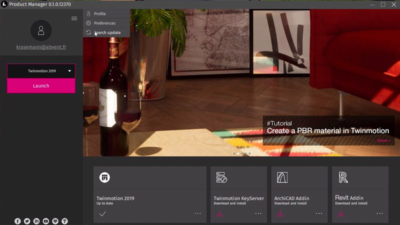 Product ManagerからTwinmotionに関するニュース(アップデート、チュートリアルなど)を確認します」。